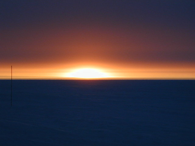The sun sets only once a year here, so it's something to be enjoyed. Sunset itself takes a few days, and the twilight lasts for a few weeks afterwards. As the atmosphere changes, it bends the light from the sun different amounts. As a result we actually saw the sun come up and down a few times during the days of sunset.